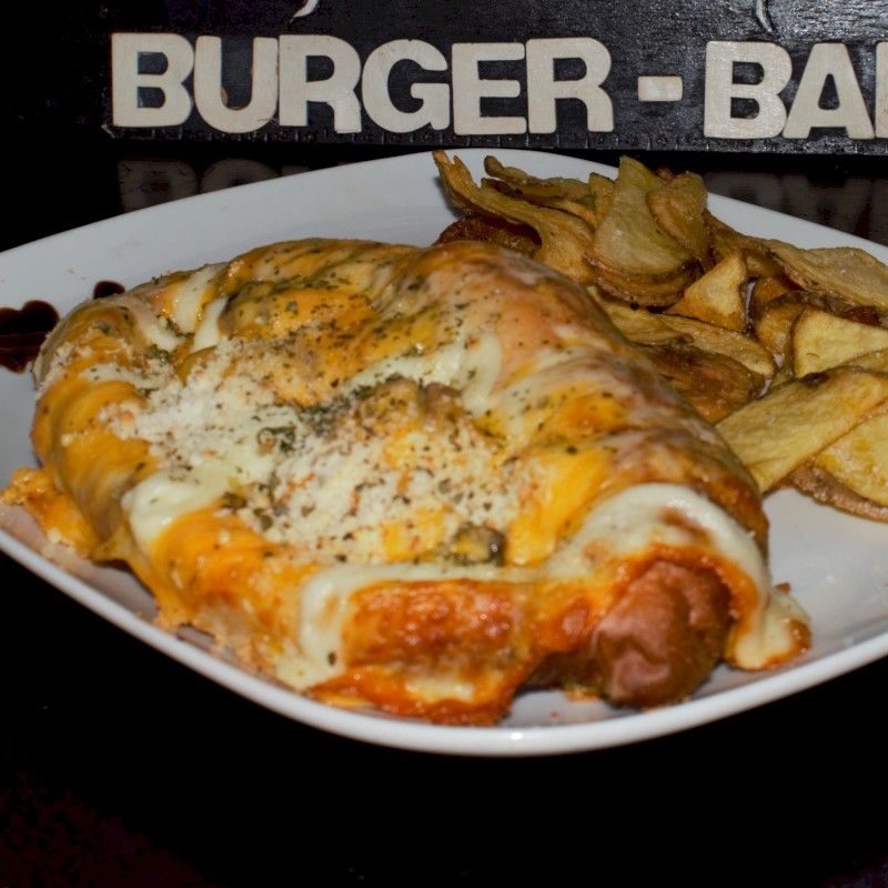 Ingredientes: 150 gr. de ternera, pollo o mixto, cheddar fundido, mozzarella gratinada, queso venezolano, parmesano y orégano. |