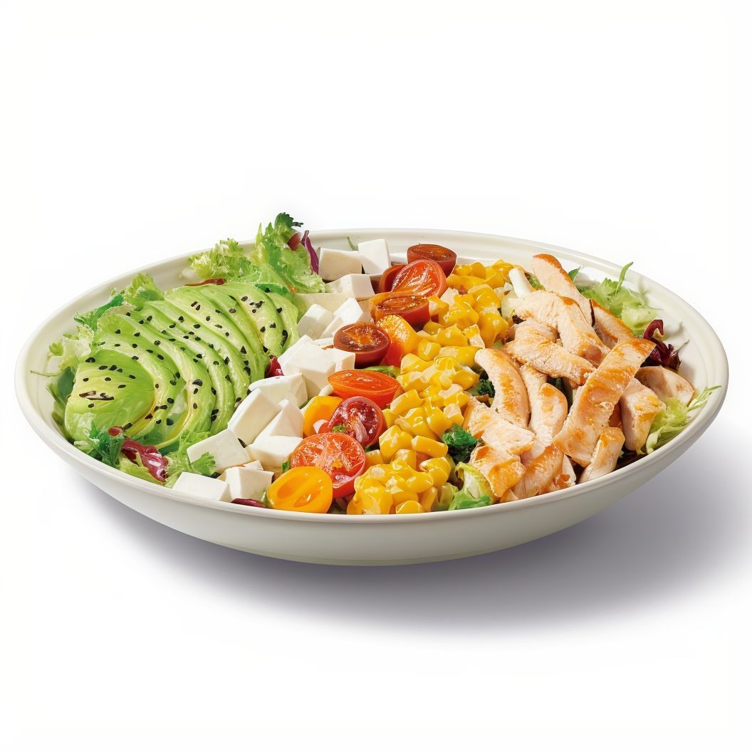 Ingredientes: Pollo a la parrilla, mezcla de lechugas, aguacate, tomates cherry, queso costeño, maíz y semillas de sésamo negro con vinagreta Gingersoy. |