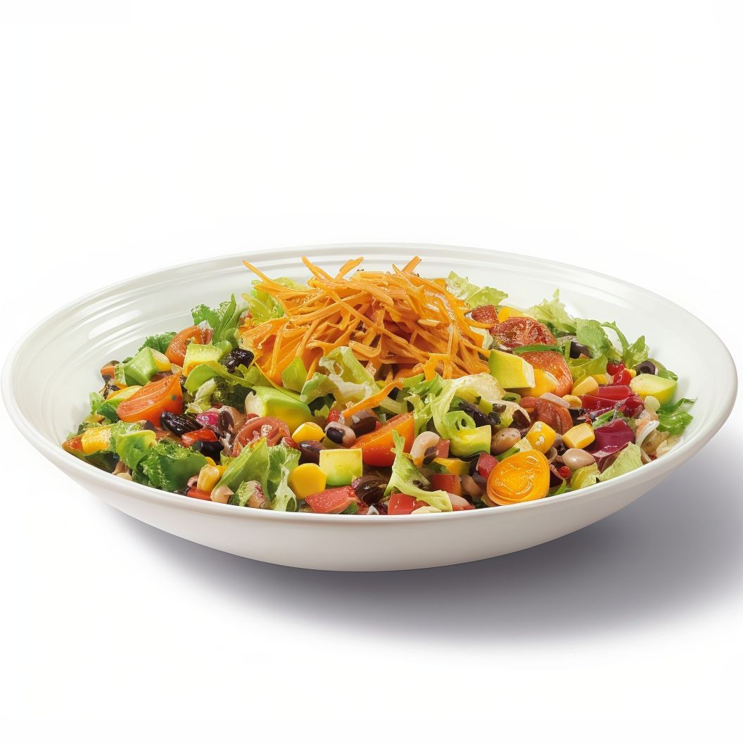 Ingredientes: Mezcla de lechugas, alubias (black beans y black eyed peas), aguacate, tomates cherry, maíz, pico de gallo y tiras de tortilla frita estilo cajún con aliño cítrico de lima y soja. |